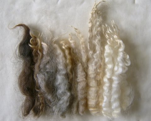 Developed in England during the 18th century, this breed produces large, long-legged animals with a highly lustrous, coarser fibre that forms flat open fleece locks. Annual growth is in excess of 150 mm (6 inches). Coarser fleeces are ideal for hard-wearing rugs and furnishings, and for doll’s hair, whereas finer English Leicester fleeces are great for outerwear as well as furnishings.