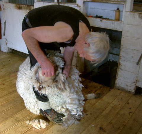 Annual shearing is timed for the second week in July (Winter), but exact timing can vary because we need 2-3 days of fine weather prior to shearing to ensure the full fleeces are dry. Shearing itself takes 1-2 days. All sheep are combined into one mob and walked 2 km to the neighbour’s woolshed. They are sorted into smaller mobs for actual shearing according to gender, age and wool colour. Because of the high degree of care taken with skirting Fleecewood fleeces, the wool handler cannot keep up with the pace of the shearer, so each fleece is loosely laid out in a large wool pack (fadge), and separated from other fleeces by a layer of newspaper. Fleeces are skirted later, and it is not uncommon to spend 30 minutes skirting each fleece.